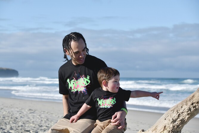 My son and I had the opportunity to be models for Kerry who is an amazing photographer (@kerryhodgephotography). We took the chance of a nice day in Dunedin, New Zealand, and walked around the park and beach to capture some special moments. This was a chance to get some photos of not only me but I also wanted some of my products which is custom printed clothing. I printed my boy and I matching tees and we wore the same clothes. We got some magical photos of us two plus some very cool photos I can use as content for social media and this website.